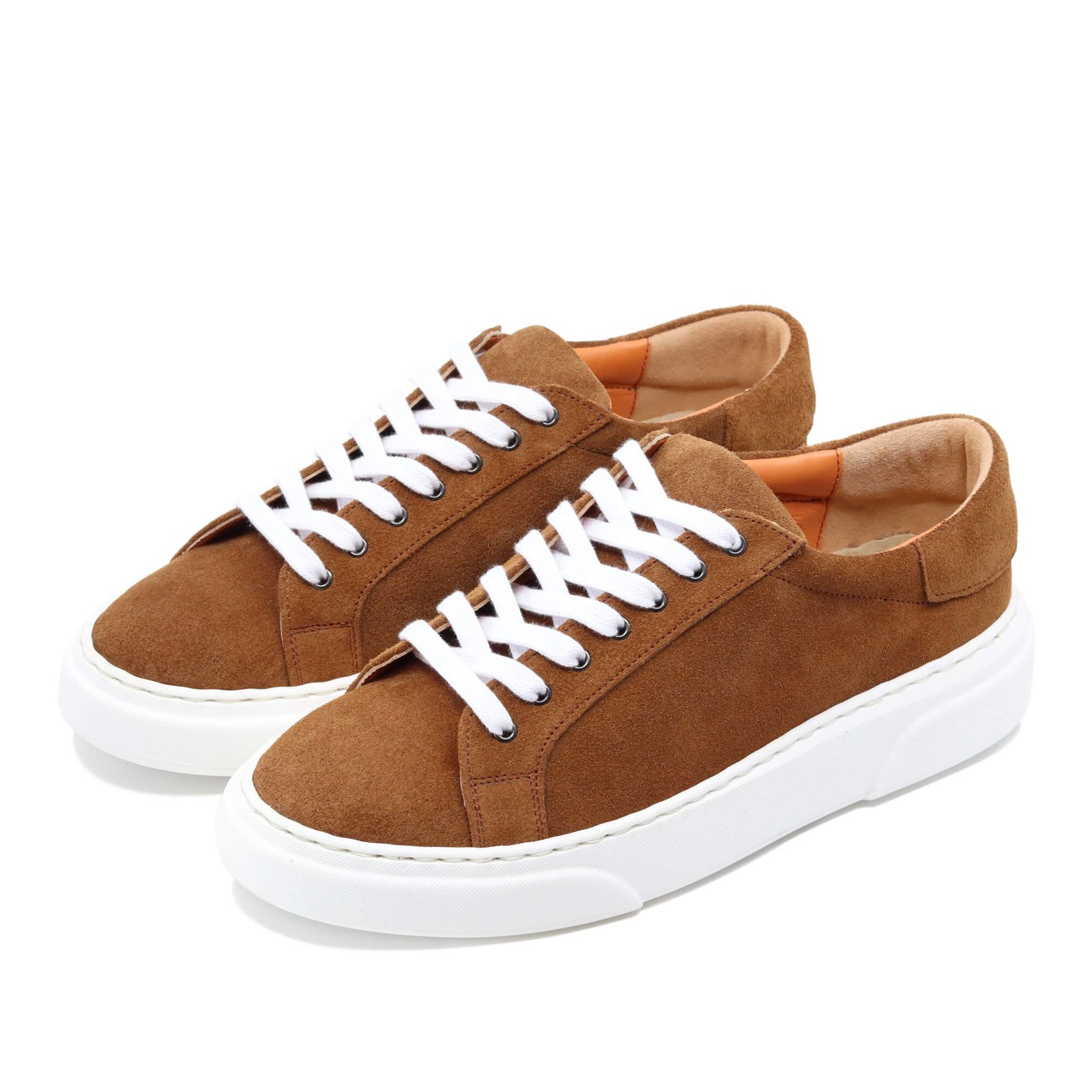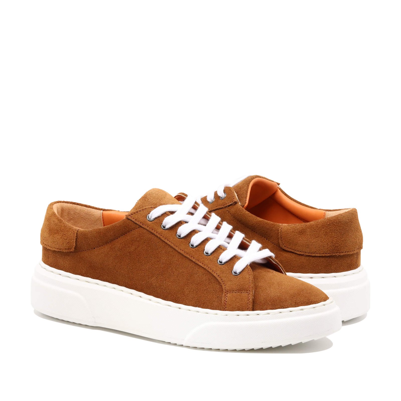 Cognac Suede Leather Sneakers sunt pantofi sport realizați din piele naturală, cu un stil casual-sport versatil. Sunt ideali pentru întâlniri informale, evenimente de tip cocktail sau plimbări relaxante prin oraș.